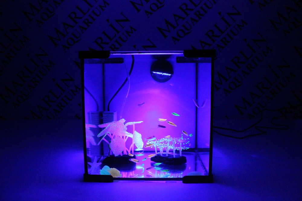 Флуоресцентные рыбки в комплект не входят. Приобрести трансгенных рыб можно в аквариальном комплексе Марлин Аквариум
